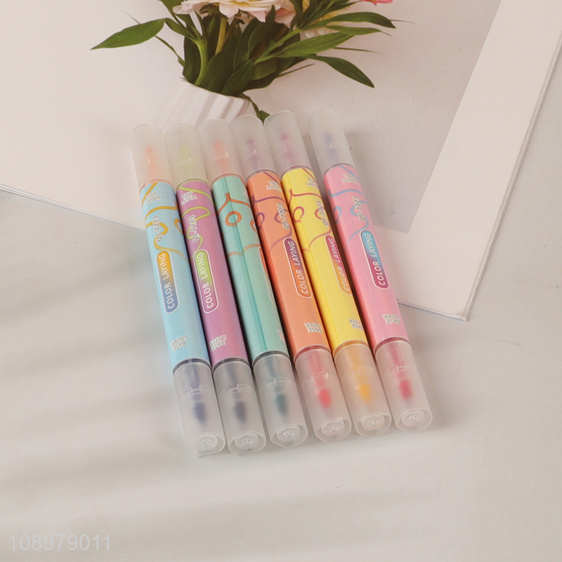 China Wholesale 6 Pieces Double Ended Fine & Chisel Tip Highlighter Pen Set