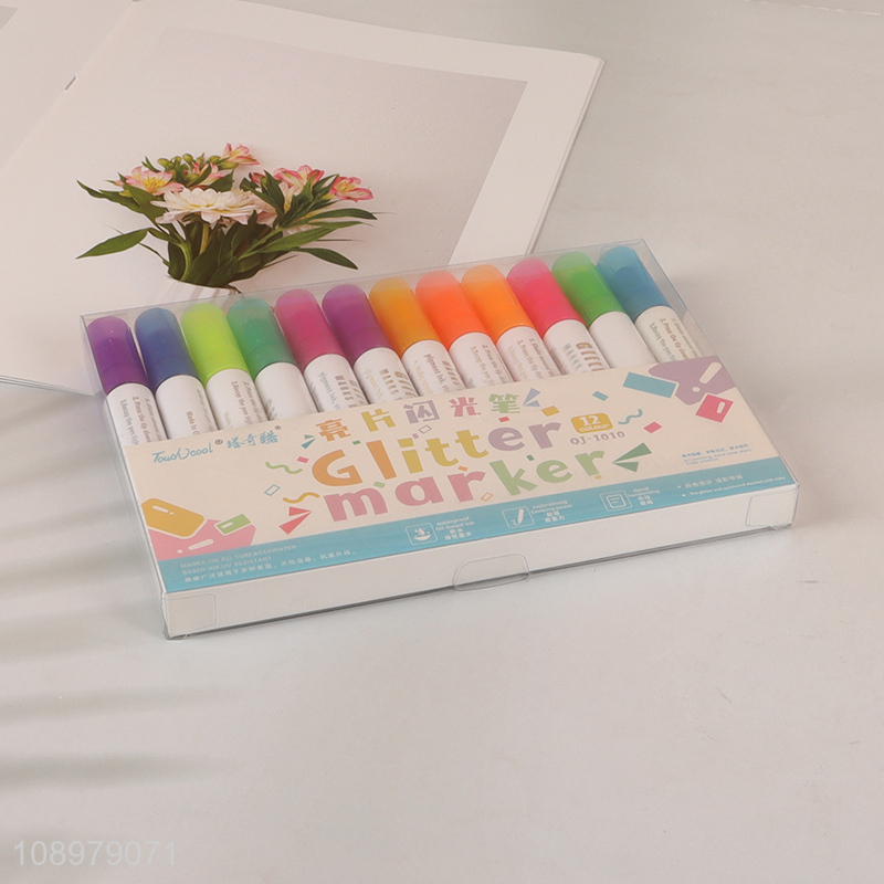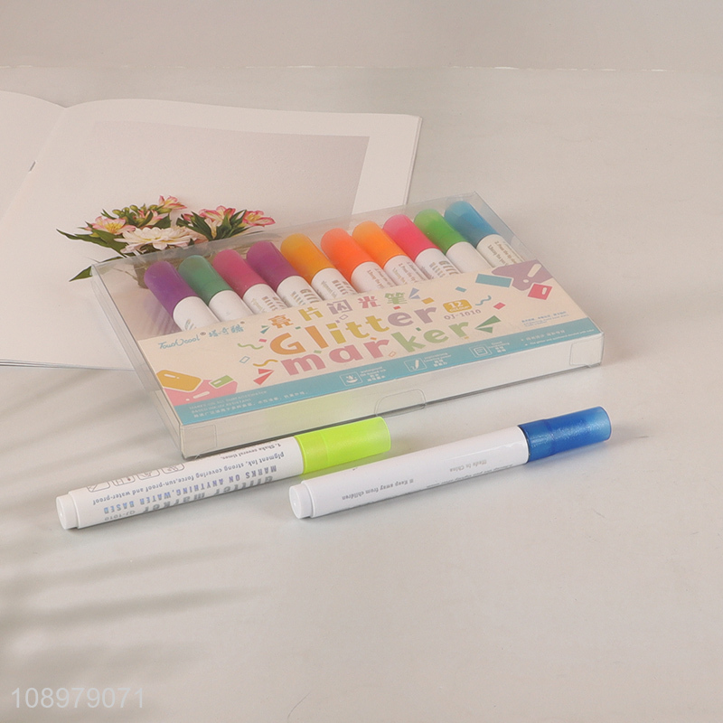 Wholesale 12 Colors Glitter Markers Shimmer Marker Pens for Kids Coloring