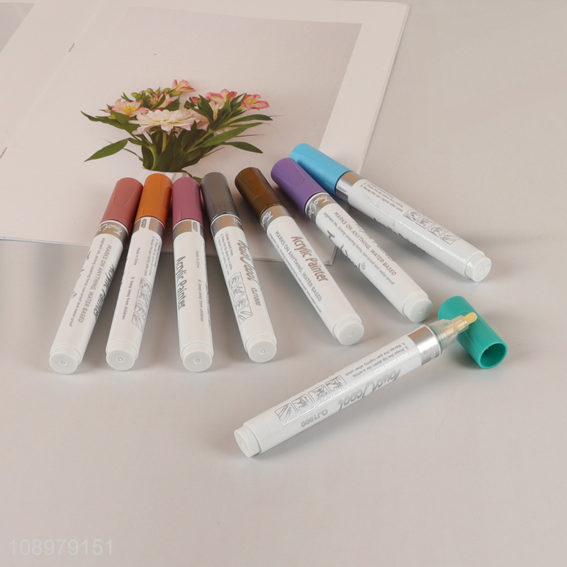 China Imports 8 Colors Round Tip Glitter Acrylic Paint Markers for Painting
