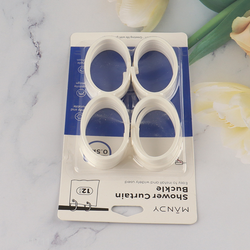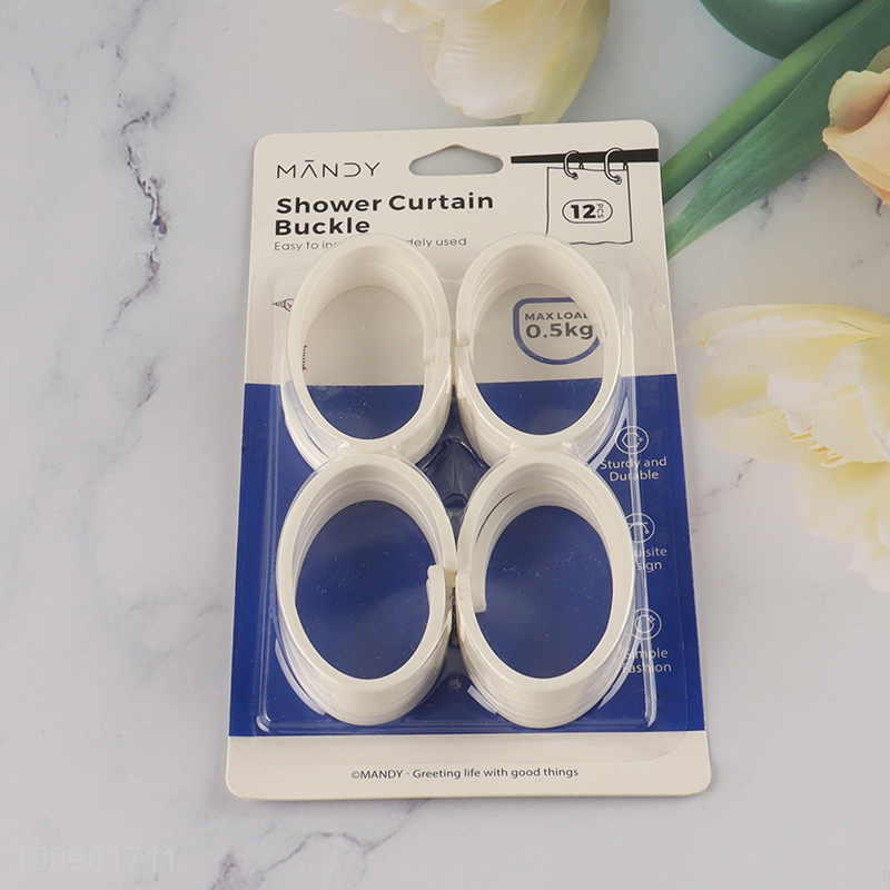 Yiwu market 12pcs plastic bathroom accessories shower curtain buckle