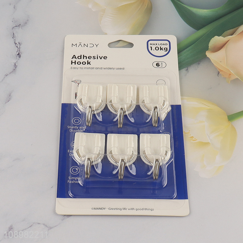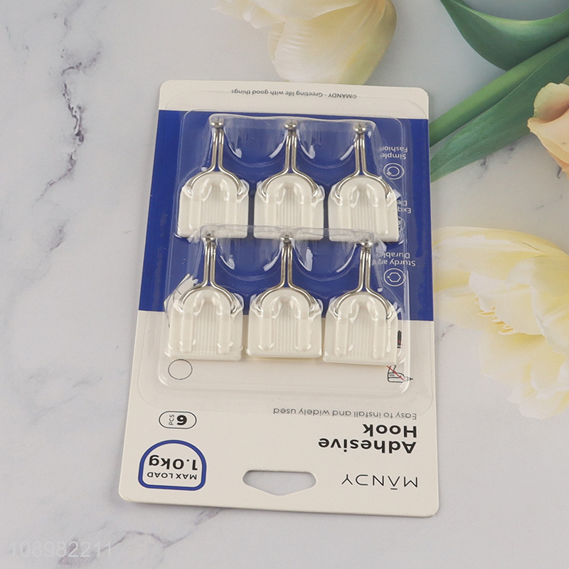 China wholesale 6pcs self-adhesive sticky hook adhesive hook plastic hook