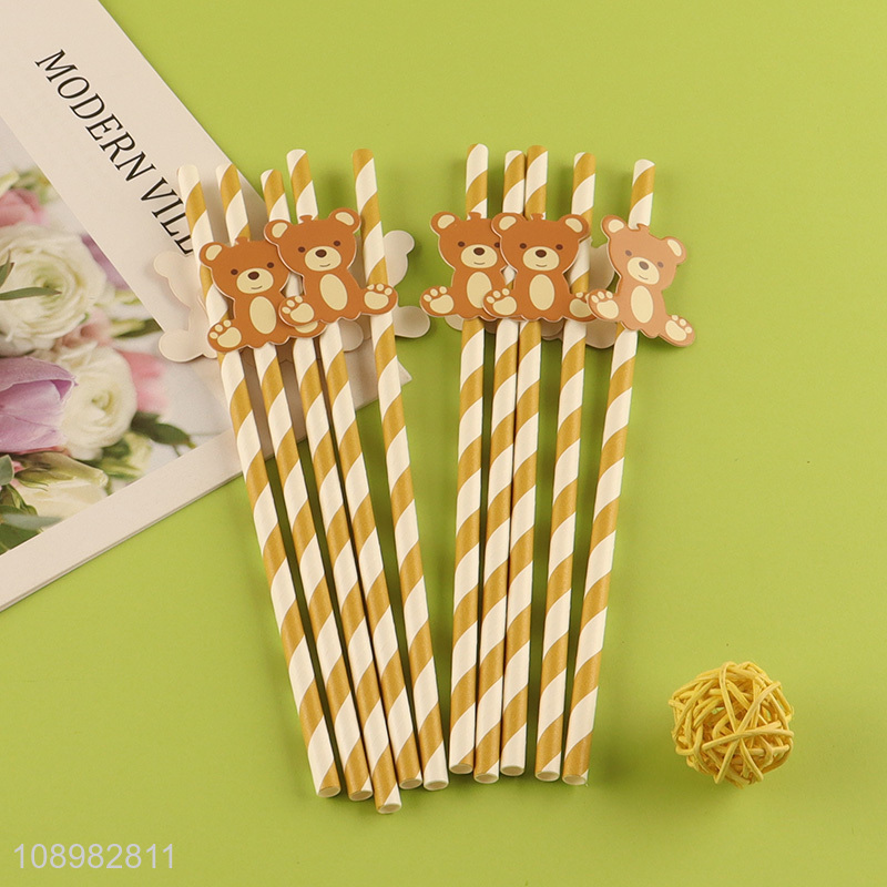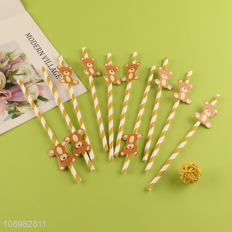 Yiwu market cartoon bear paper disposable drinking straw for sale
