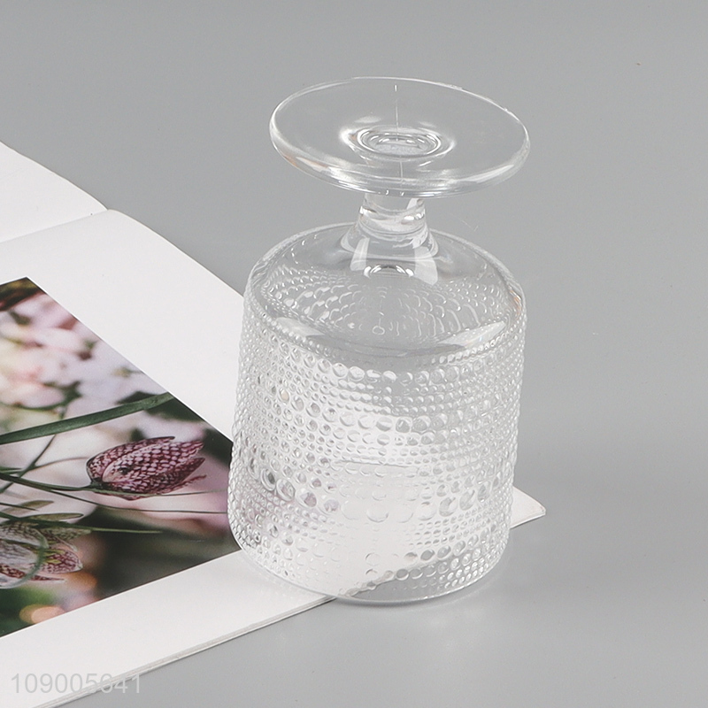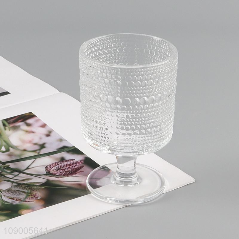 Yiwu market clear glass embossed goblet creative coffee cup wine glasses