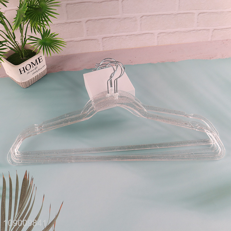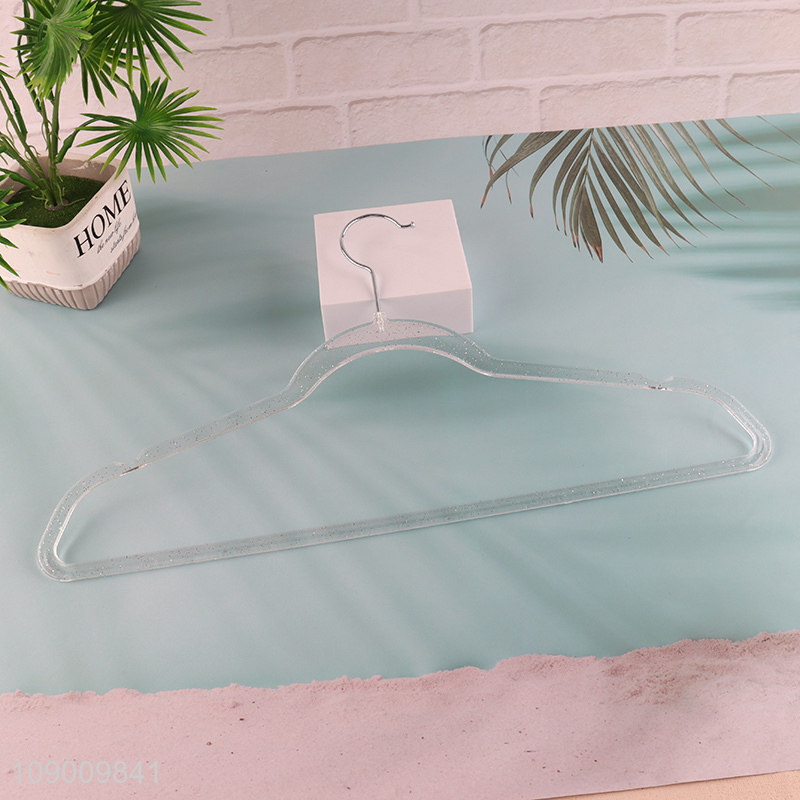New Arrival Clear Plastic Clothes Hangers Non-Slip Glitter Clothes Hangers