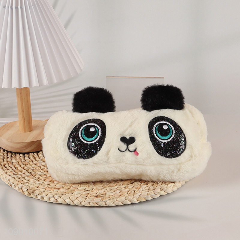 Hot selling cartoon panda shape plush school kids pencil bag wholesale