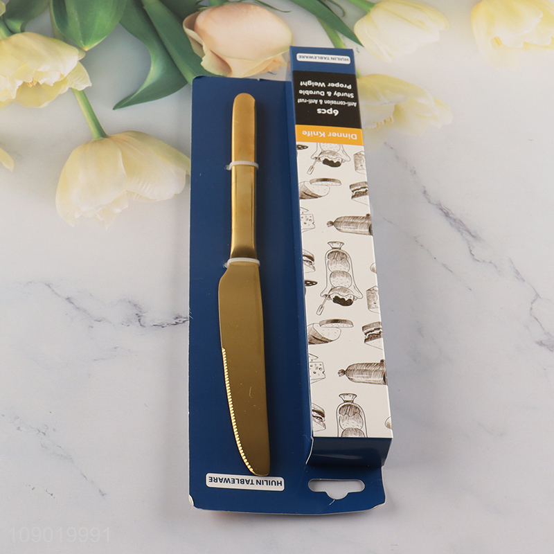 China Imports 6PCS Titanium Gold Plating Stainless Steel Dinner Knives Set