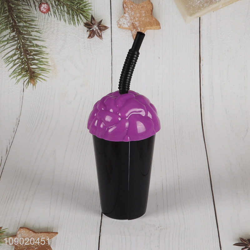 Popular products cartoon brain shape straw cups plastic tumbler cups
