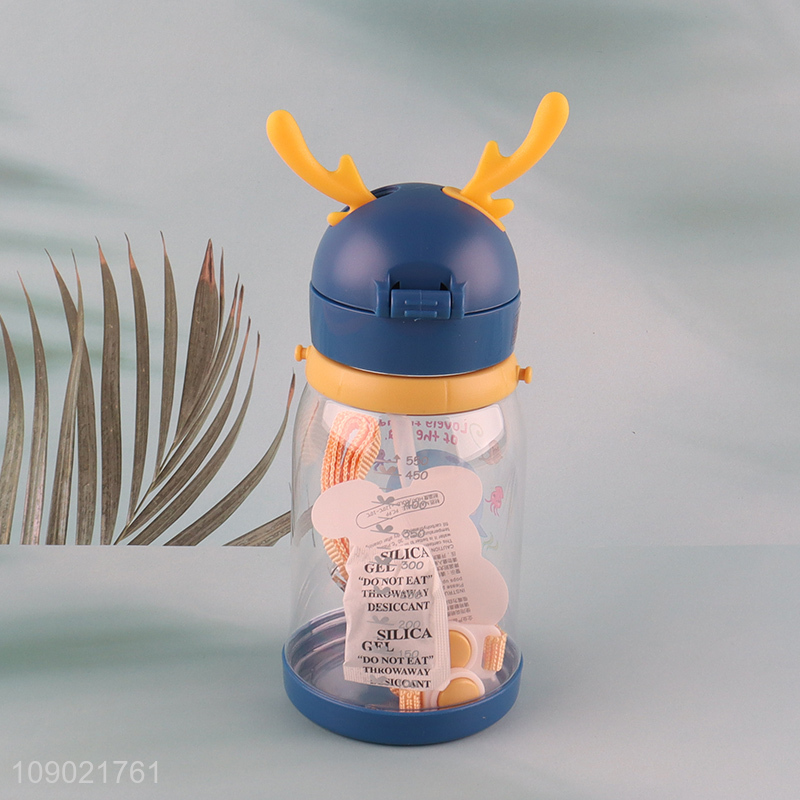Wholesale 550ml Cute Plastic Kids Water Bottle with Silicone Straw & Strap