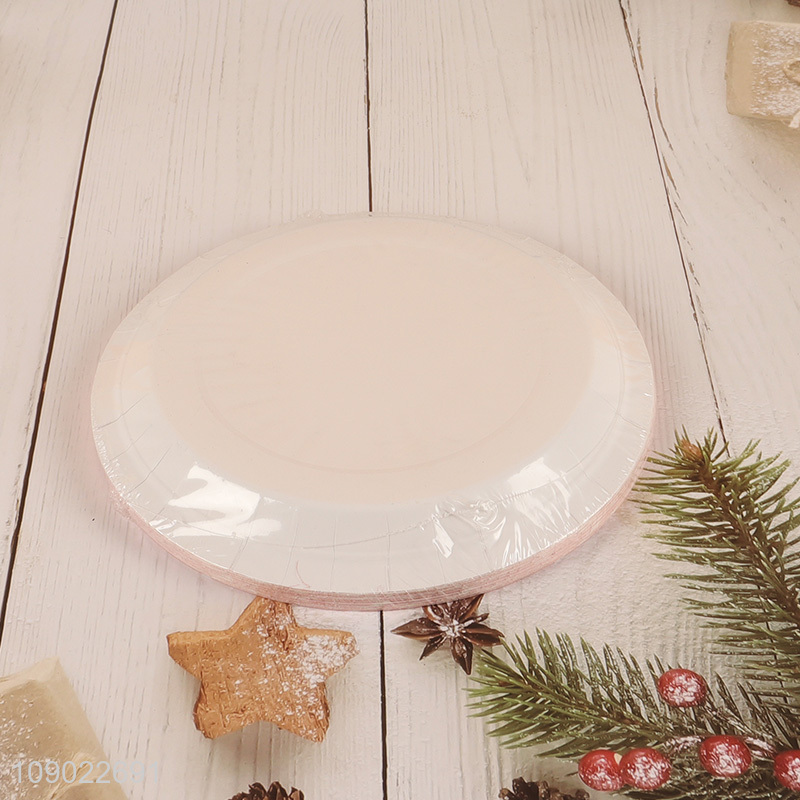 Hot selling merry Christmas printed round disposable dinnerware plate for tabletop decor