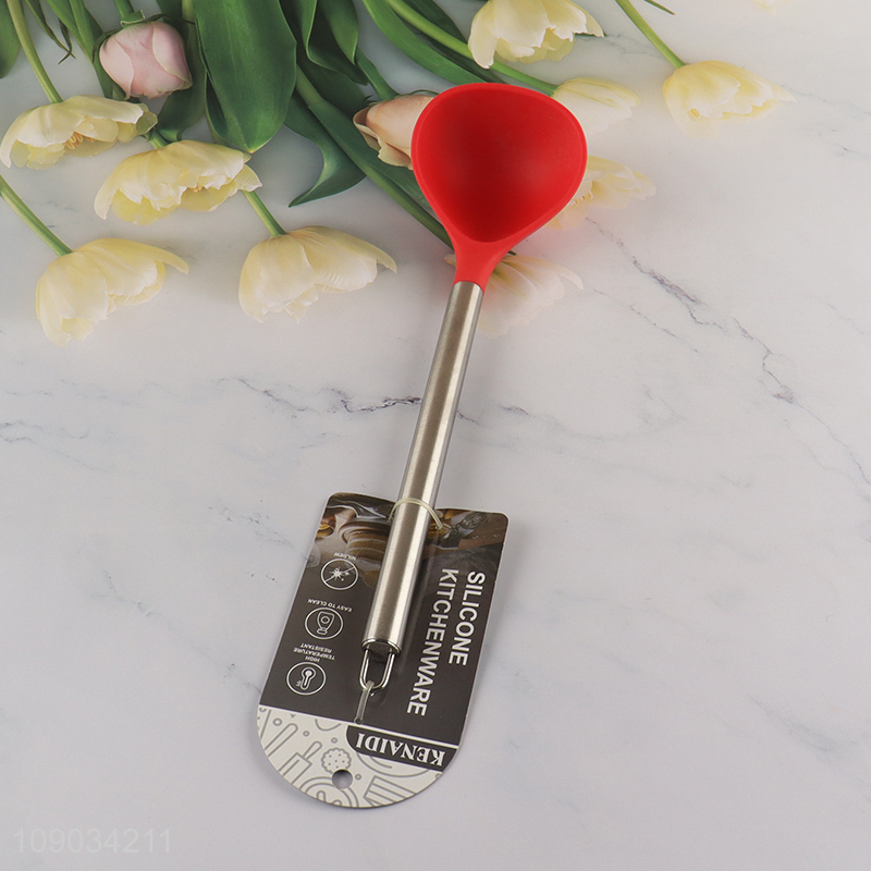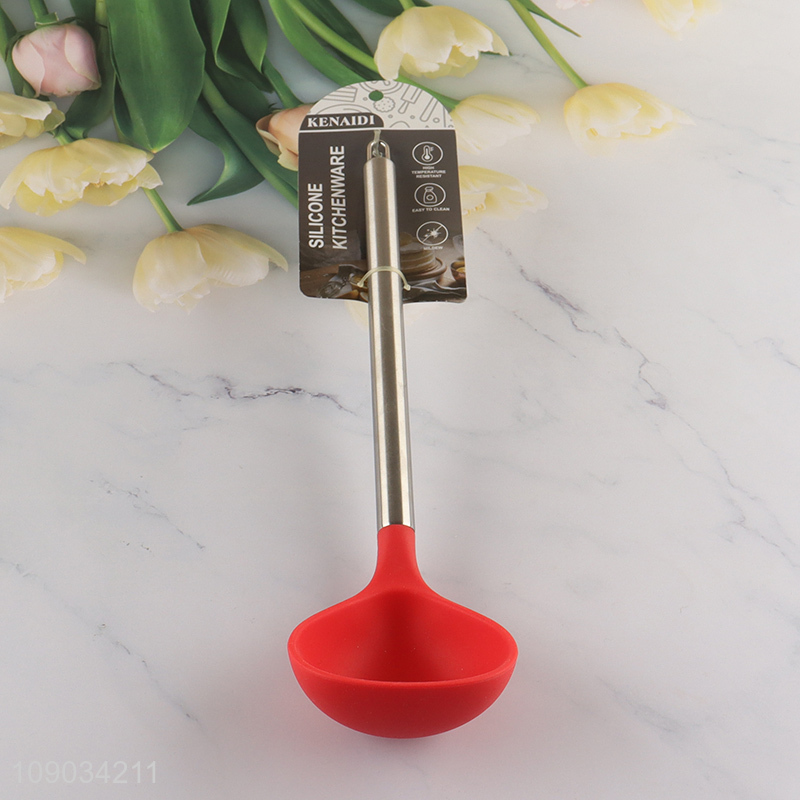 China supplier kitchen utensils long handle silicone soup ladle for sale