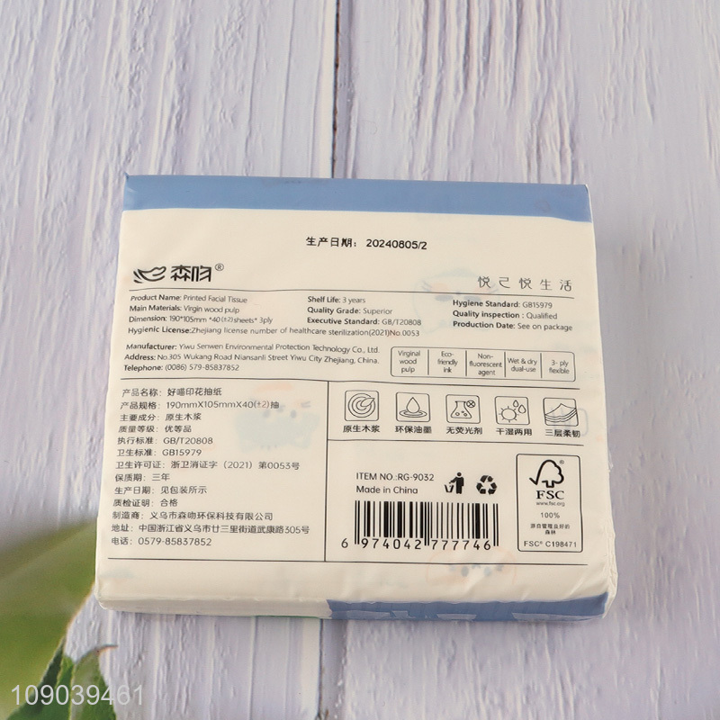 Top selling cartoon printed 40pcs wood pulp facial tissue napkin wholesale