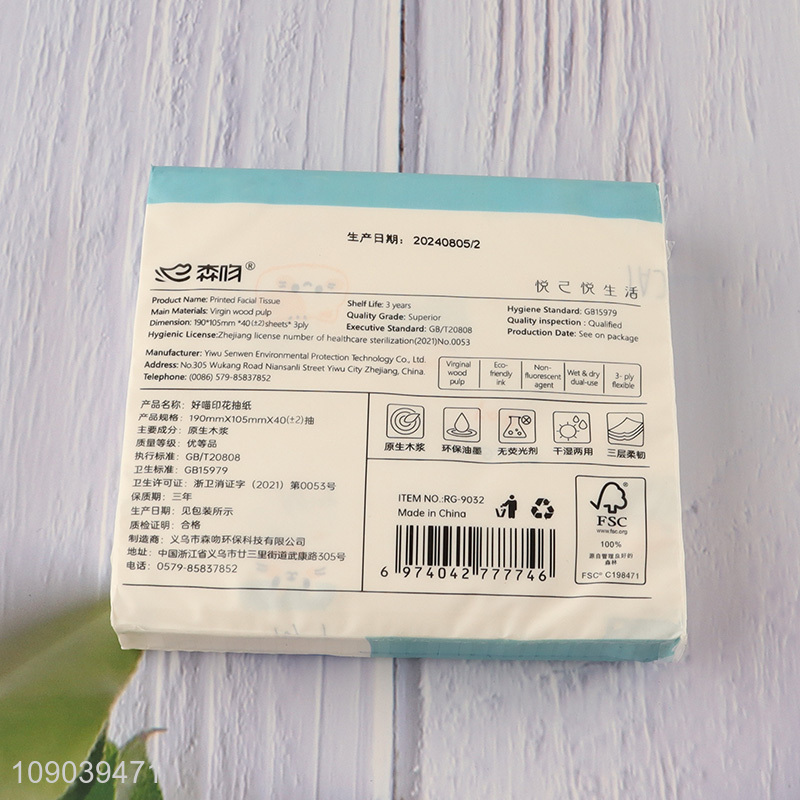 Latest design cartoon printed 3ply wood pulp facial tissue napkin for sale
