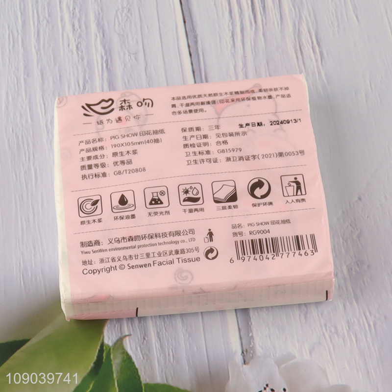 Hot selling portable cartoon printed wood pulp facial tissue napkin