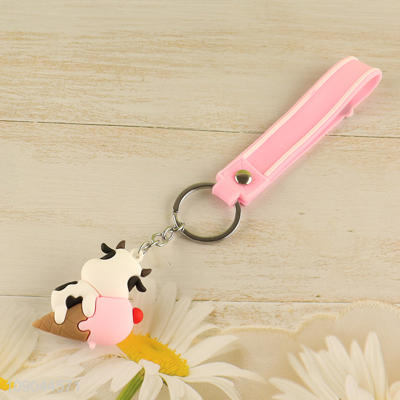 Factory supply cute cartoon cow pendant silicone keychain for gifts