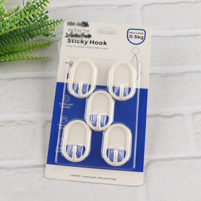 China products 5pcs white bathroom kitchen sticky hooks for household