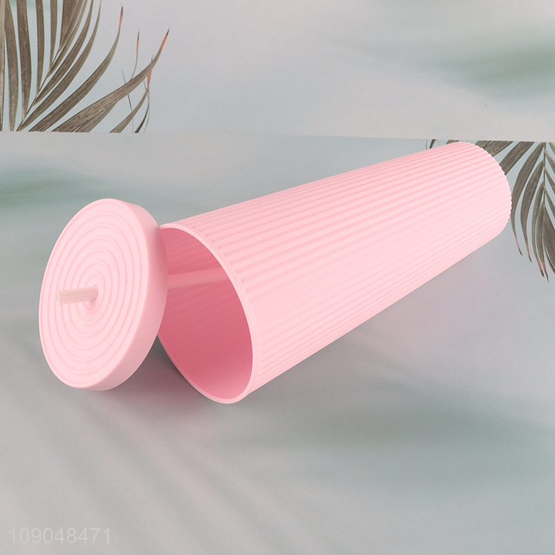 Factory supply pink plastic large capacity water cup drinking cup with straw