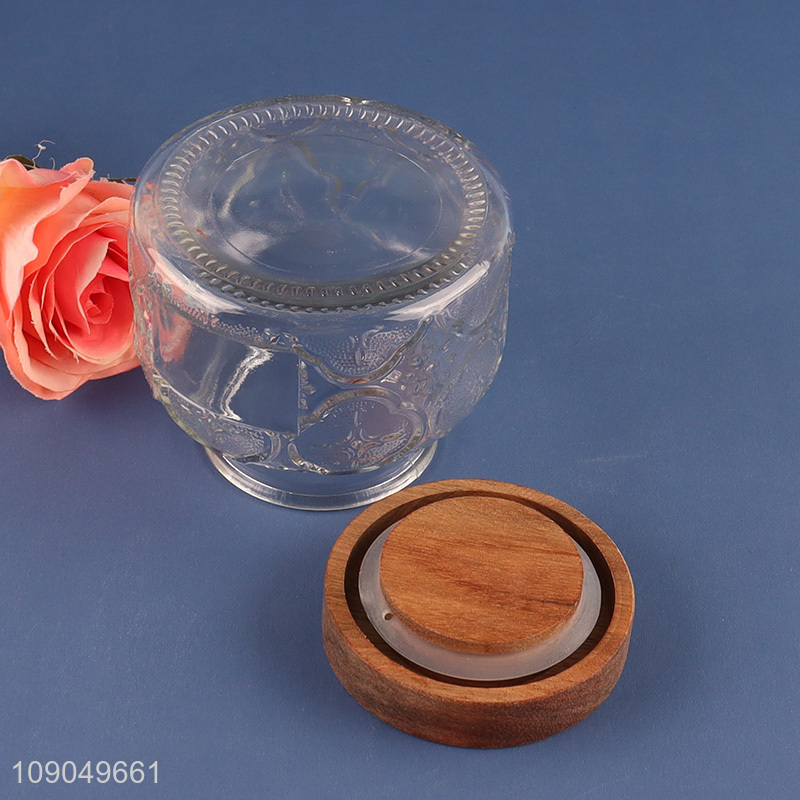 Best selling clear embossed sealed glass storage jar wholesale