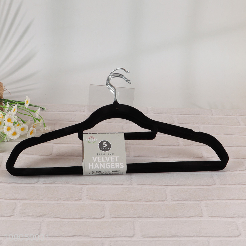 New arrival non-slip 5pcs velvet clothes hanger black coat hanger