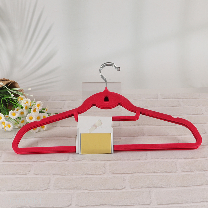Best selling red 3pcs anti-slip flocked clothes hanger coat hanger wholesale