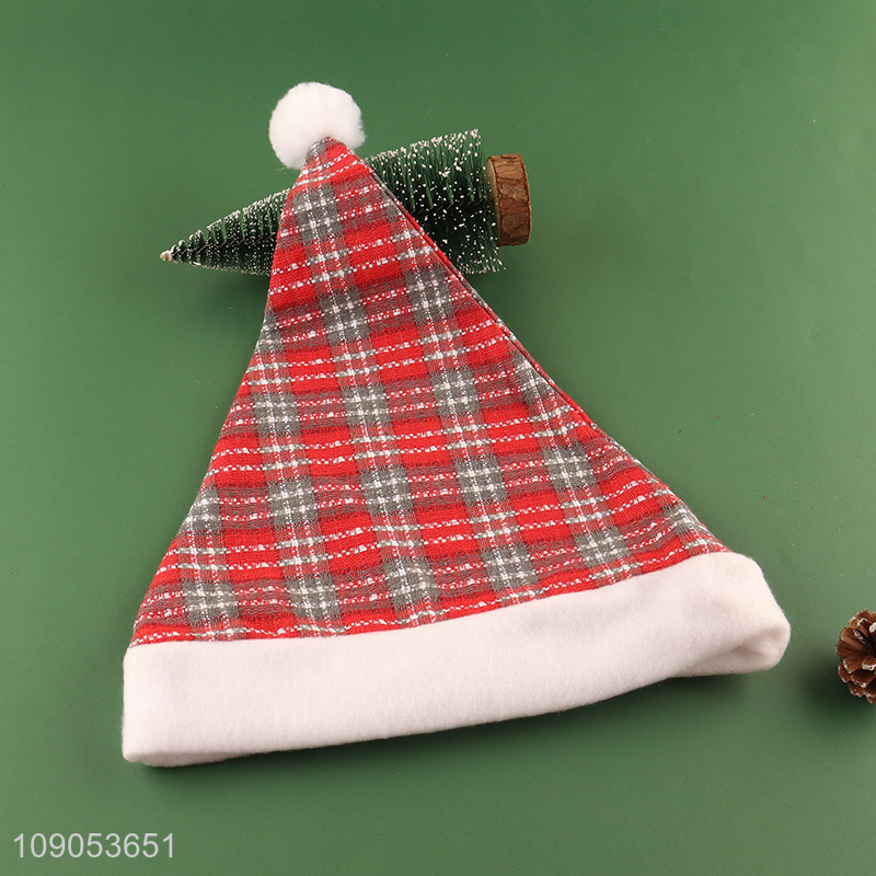 Popular Priduct Plaid Santa Hat Christmas Hat for Adults Kids