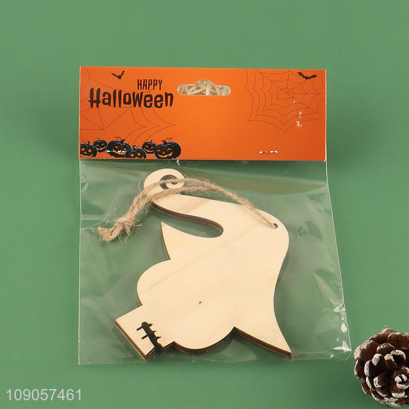 Good Quality Halloween Wooden Decorations Wooden Hanging Ornaments with Rope