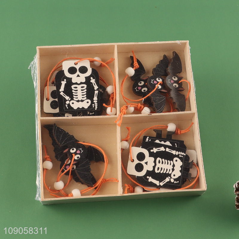 Online Wholesale 12PCS Halloween Wooden Hanging Ornaments Wooden Halloween Tree Ornaments