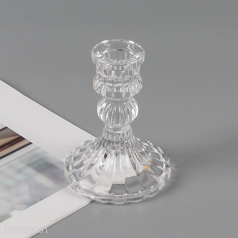 Yiwu market wedding decoration glass clear candlestick candle holder for sale