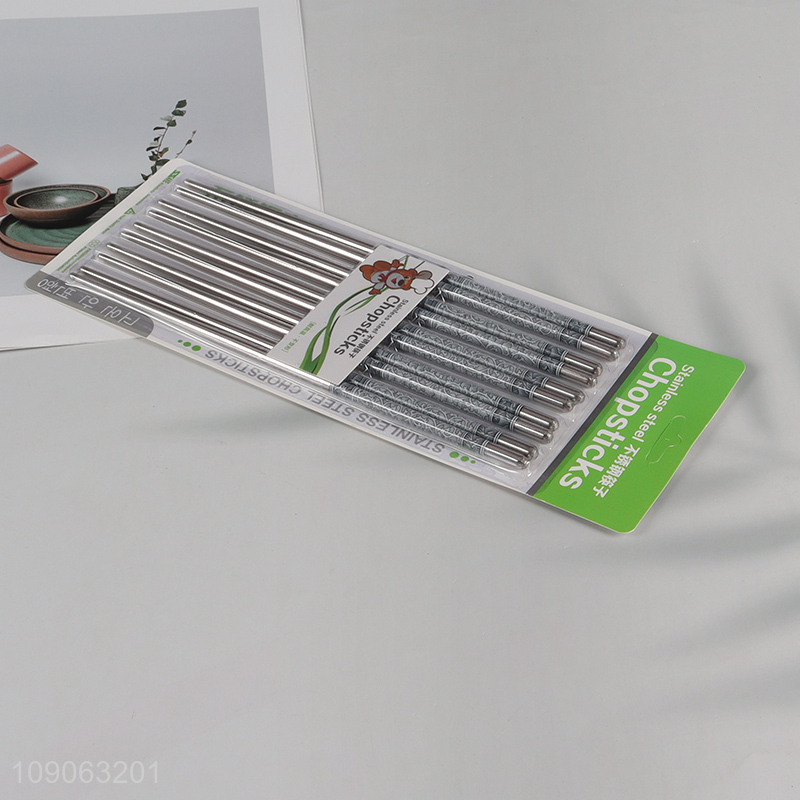 High Quality 5 Pairs Non-Slip 201 Stainless Steel Metal Chopsticks Set