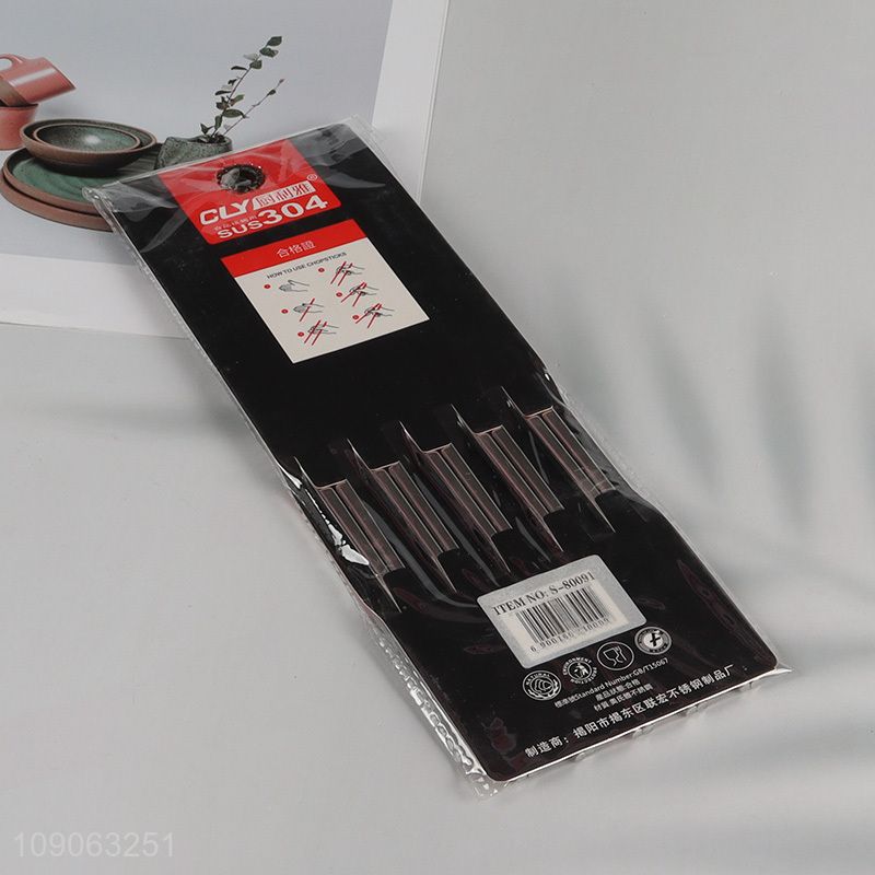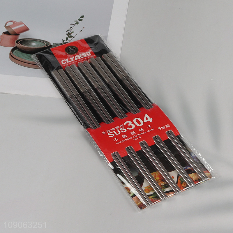 Promotional 5 Pairs 304 Stainless Steel Metal Chopsticks for Home Restaurant
