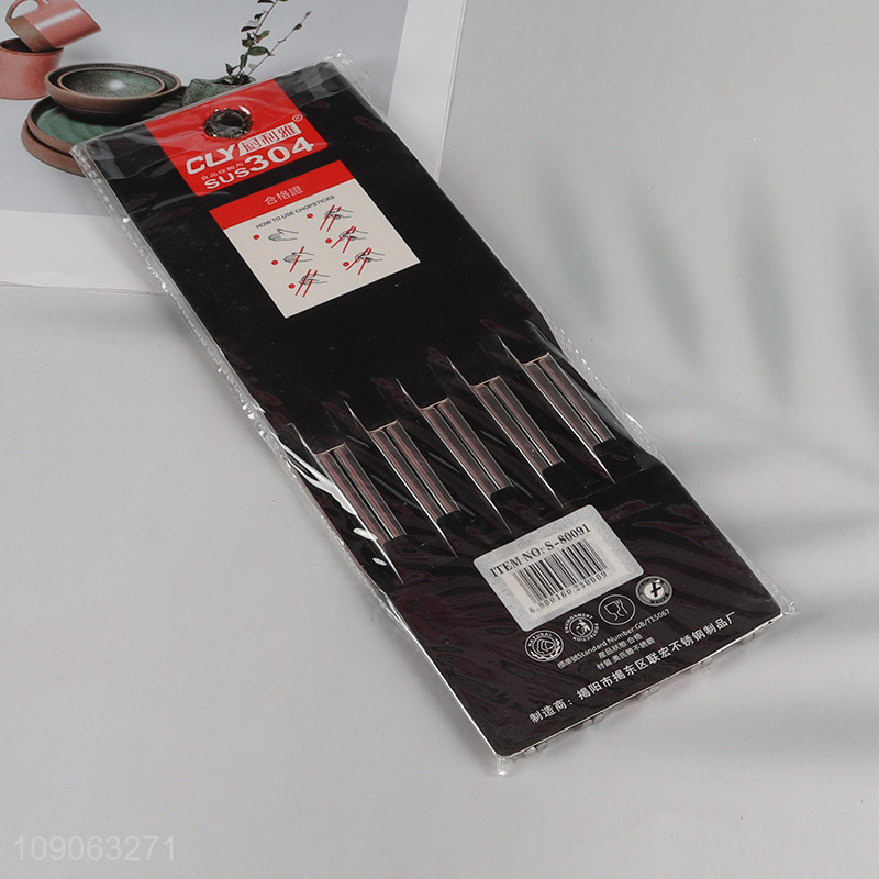 Factory Supply 5 Pairs 304 Stainless Steel Chopsticks Reusable Chopsticks Set