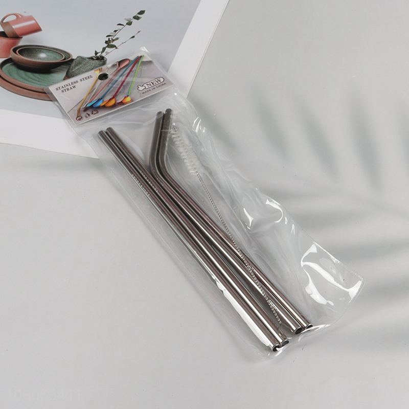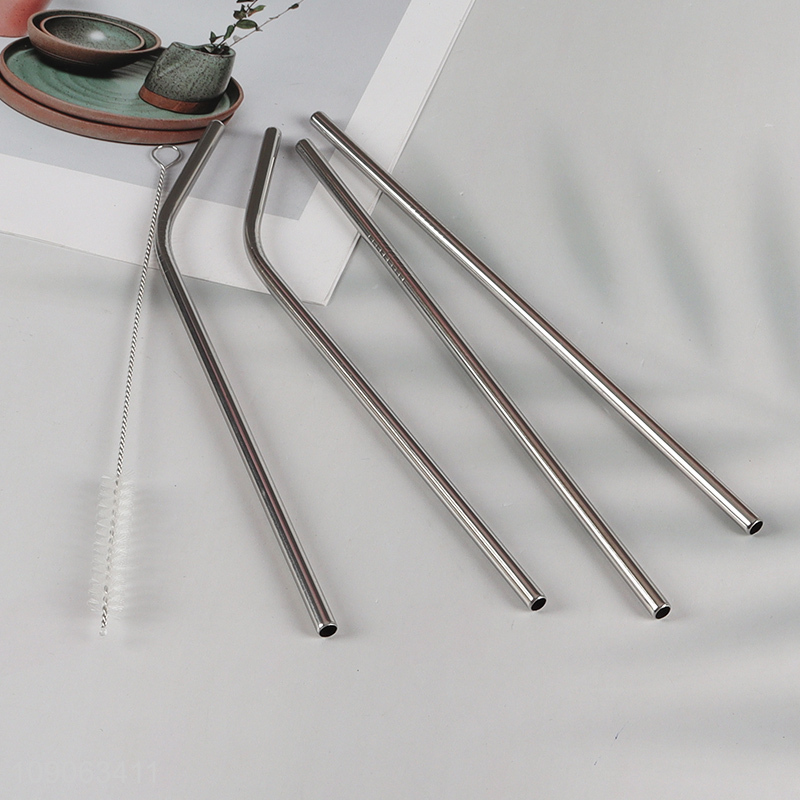 New Arrival 4 Pack Stainless Steel Straws 2 Straight + 2 Bent with 1 Straw Brush