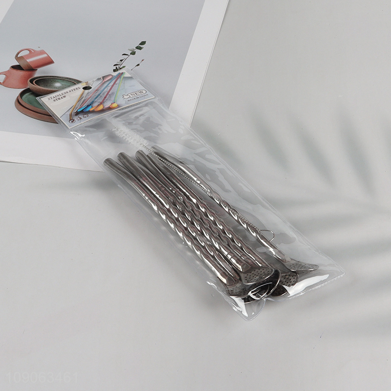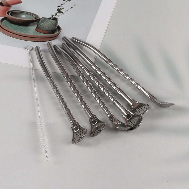 Factory Price 6 Pack Stainless Steel Bombilla Straw Spoons with 1 Straw Brush