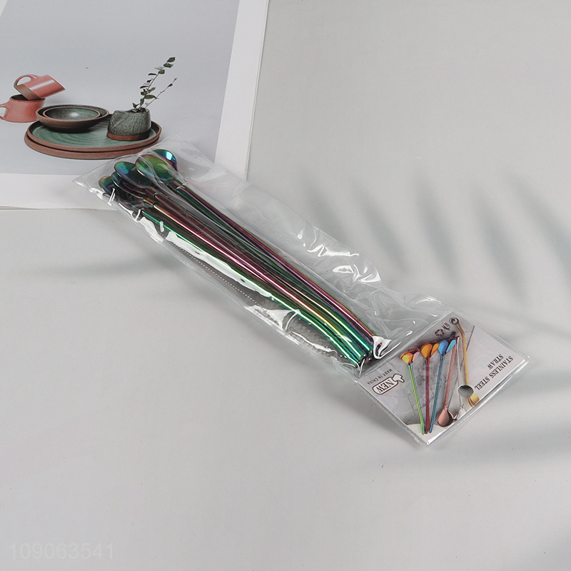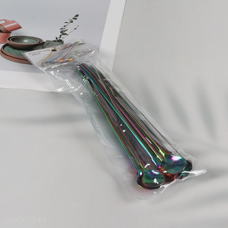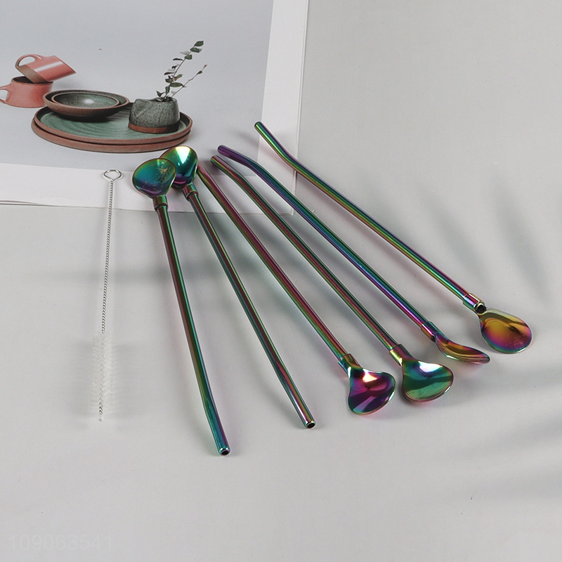 New Product 6 Pack Stainless Steel Straw Spoons with 1 Straw Cleaner Brush