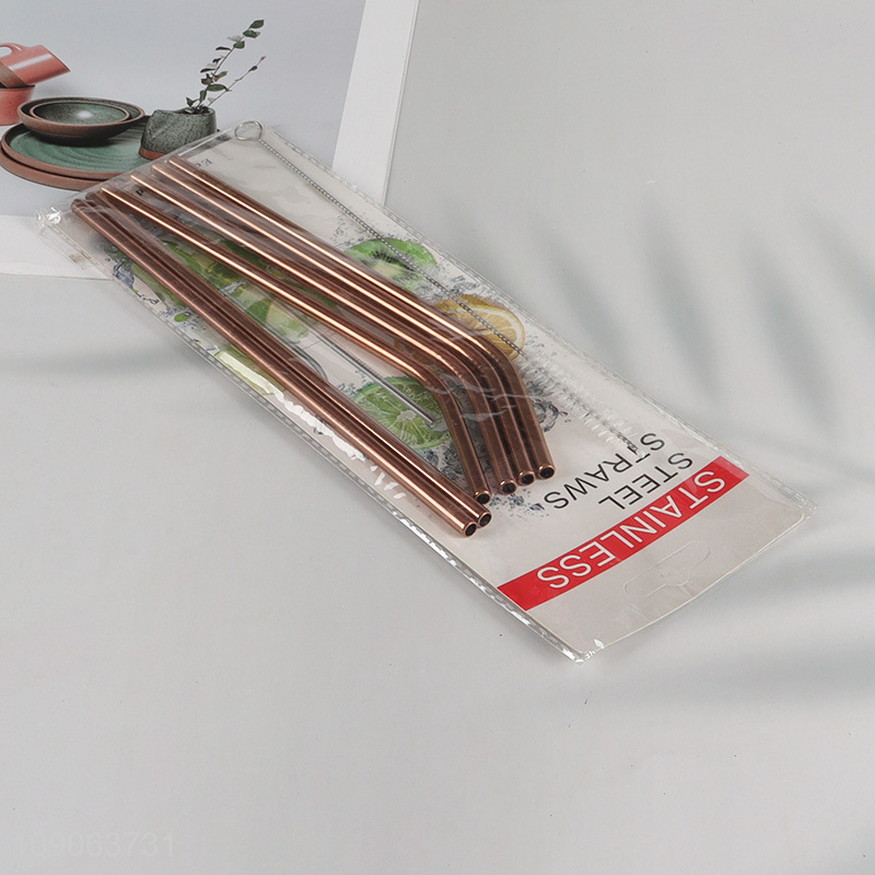 Promotional 6 Pack Stainless Steel Straws 4 Straight + 2 Bent with 1 Straw Brush