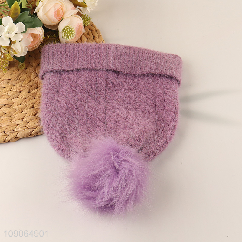 High Quality Women'S Beanie Hat Fluffy Knitted Beanie Cap with Pompom