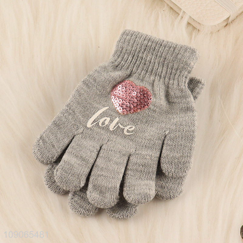 Online Wholesale Winter Warm Gloves Sequin Knitted Gloves for Kids Girls