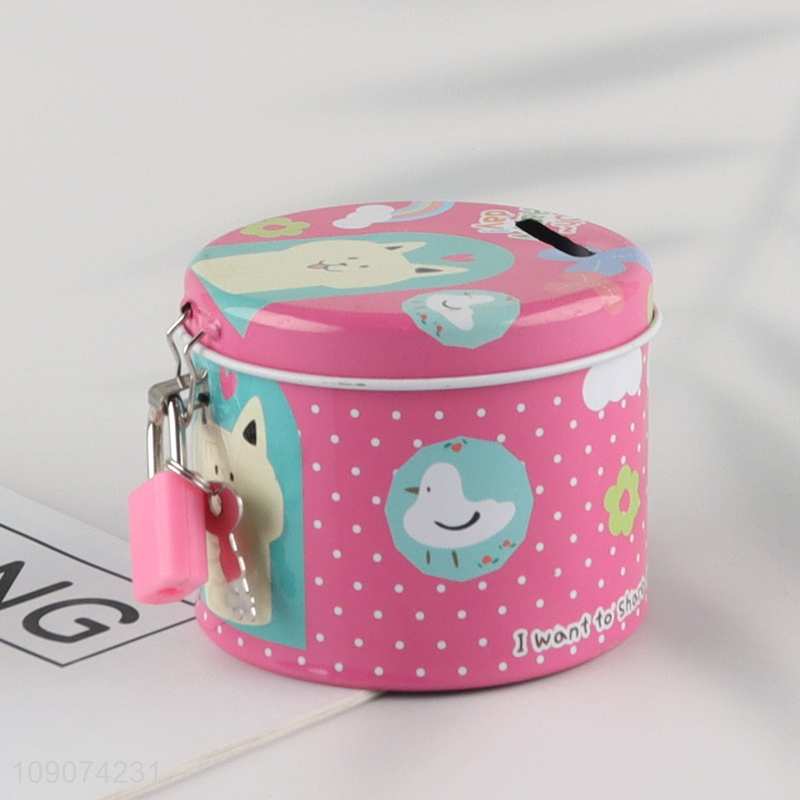 Hot selling cartoon metal money box with padlock