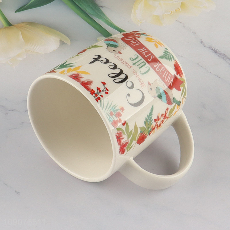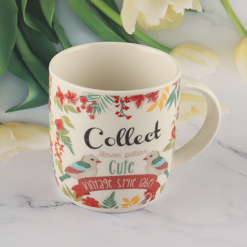 Top quality flower printed coffee cup ceramic water cup with handle