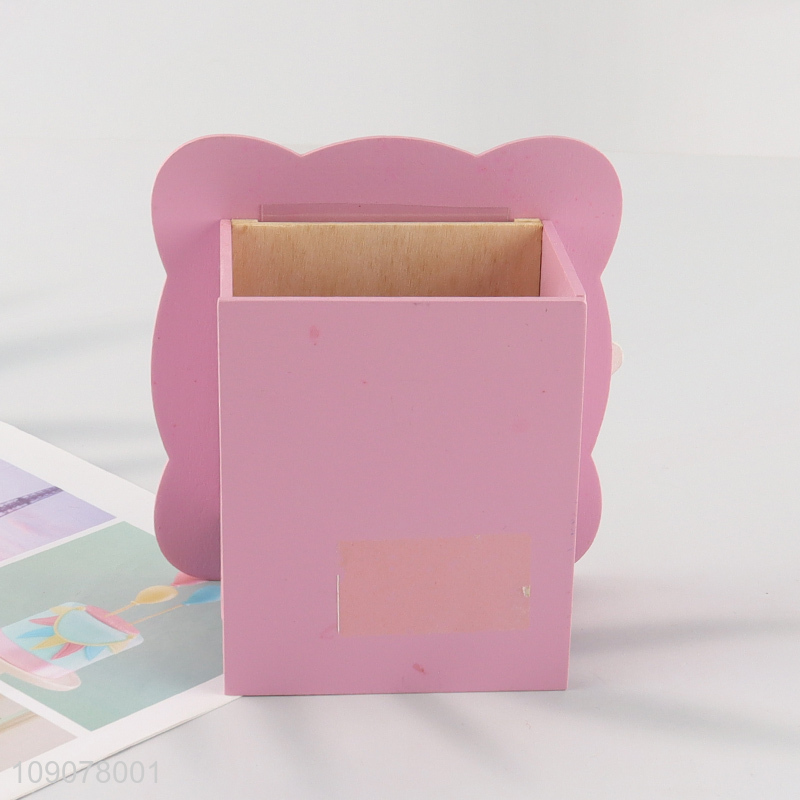 Yiwu market pink desktop wooden photo frame picture frame with pen holder