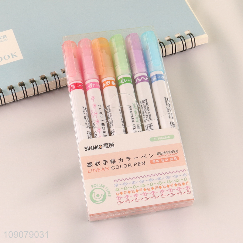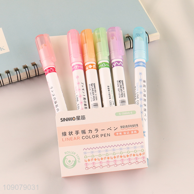 Factory price 6pcs contour pen double line wave curve pen for stationery