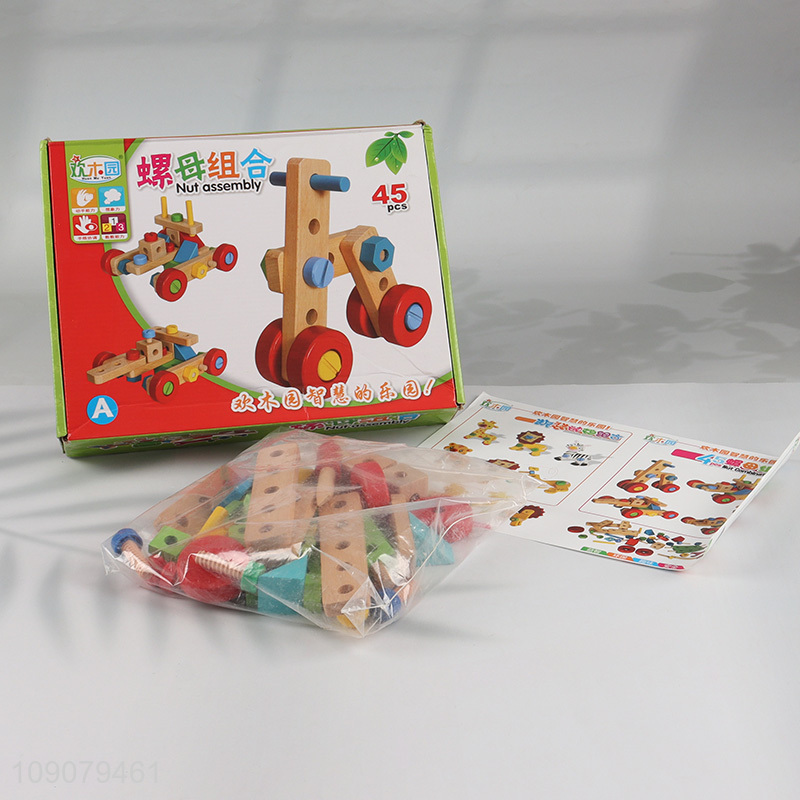 Wholesale 45 Pieces Wood Nuts and Bolts Toy Wooden Educational Toy for Kids