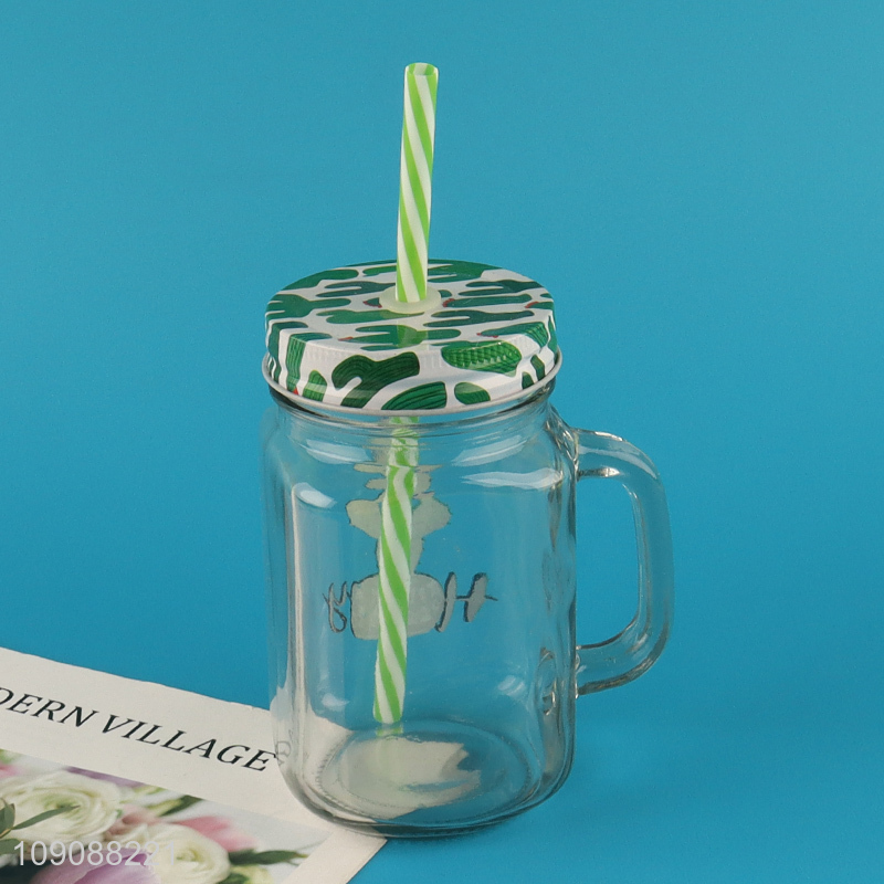 Factory Supply Cactus Mason Jar Glass Cup With Lid and Straw
