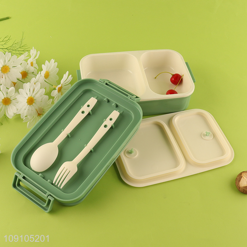 New Arrival Lunch Box 900ML 2-Compartment Plastic Bento Box with Spoon & Fork