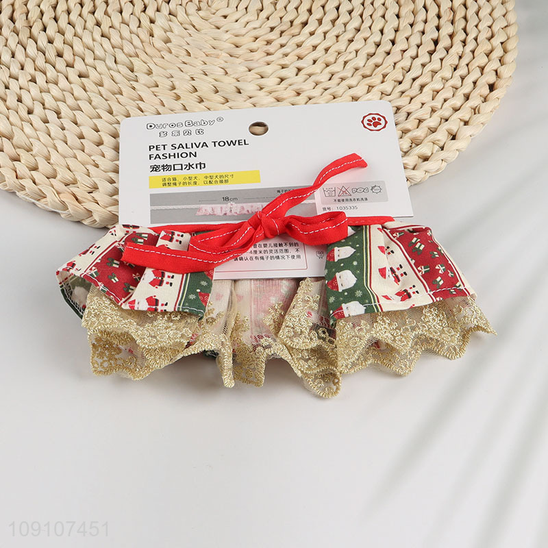 Good quality christmas style cute pet saliva towel with bow