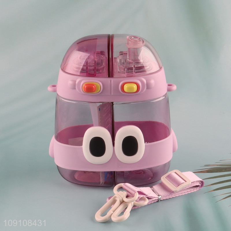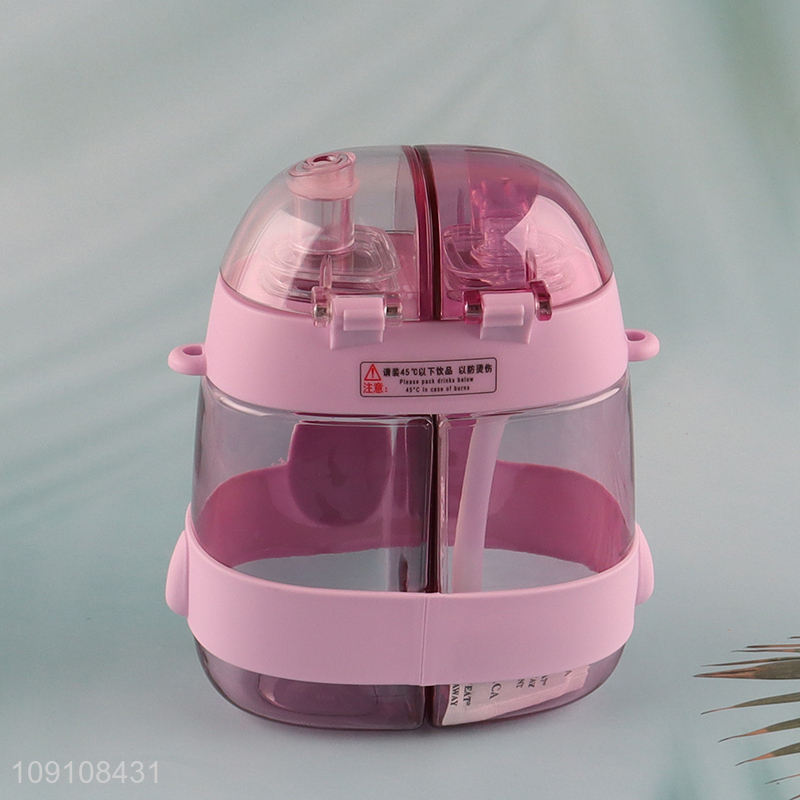 New Product Cute Water Bottle Dual Drink Bottles with Straw & Shoulder Strap