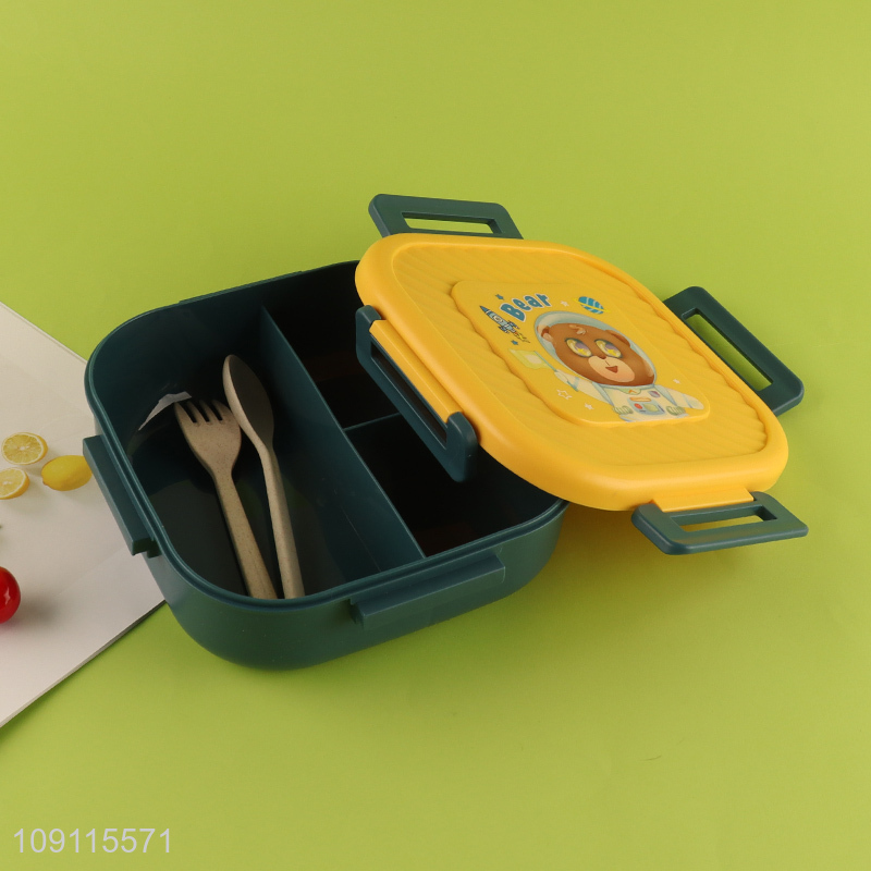 Low price cartoon bear school students lunch box with spoon and fork