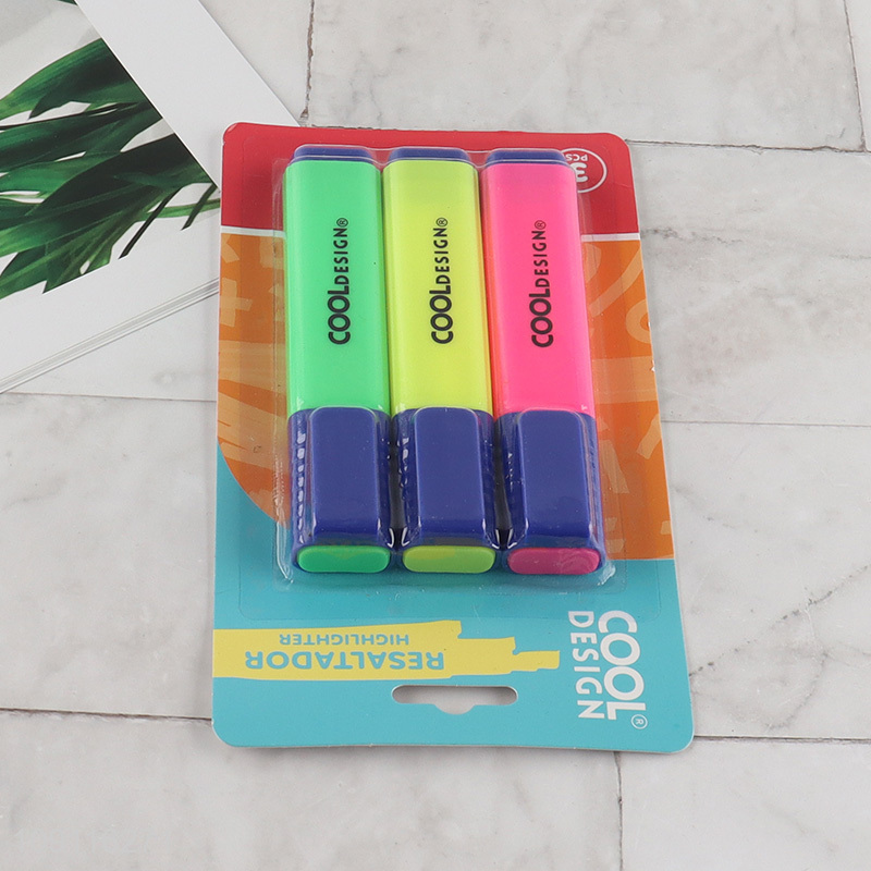 Low price 3pcs school office stationery highlighters pen set for sale