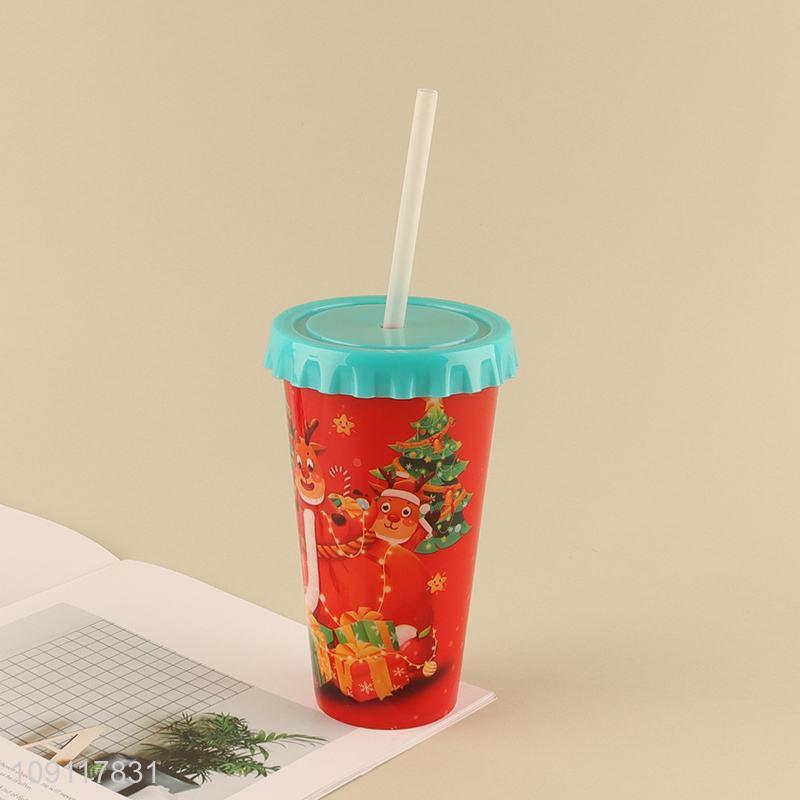 China wholesale christmas series plastic water cup straw cup