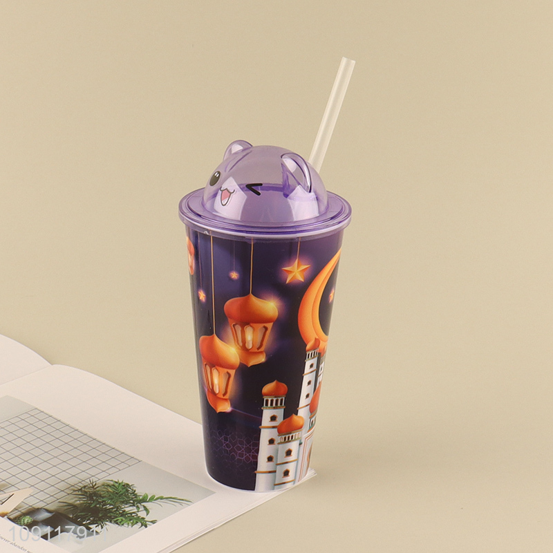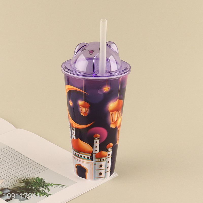 Yiwu market cartoon bear plastic 500ml water cup straw cup
