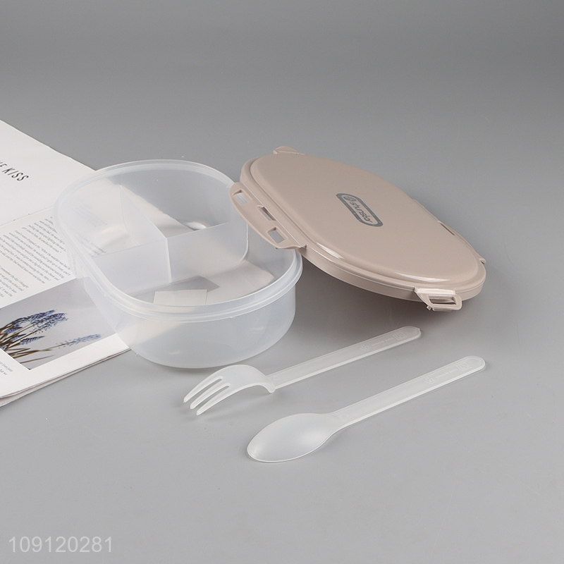Good Quality 3-Compartment Plastic Lunch Box Meal Pre Container with Spoon & Fork